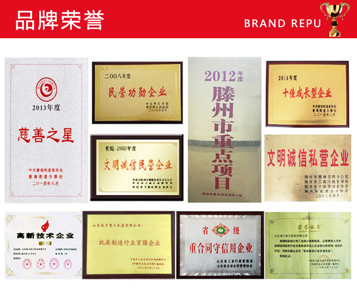 山東威力重工機床有限公司歷經數十年年的改革與發展,威力重工取得了不計其數的榮譽,包括政府組織機構評選頒發的各類證書,媒體和市場研究機構的獎項,公眾通過正式和非正式渠道對企業的贊許等等。這些榮譽是社會和公眾對山東威力重工機床有限公司的獎勵,是廣大消費者對威力重工產品的認可,是山東威力重工優良口碑的見證。