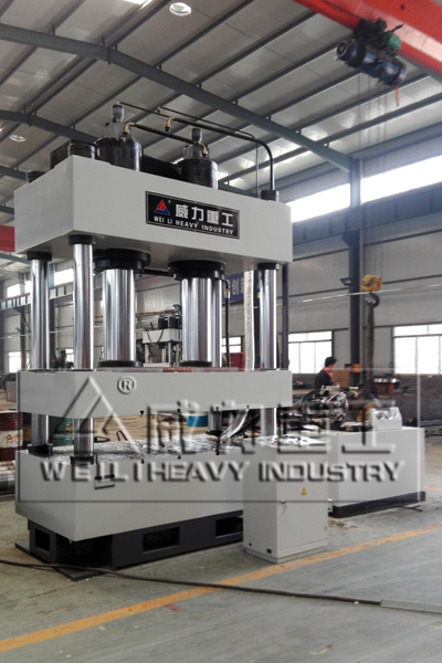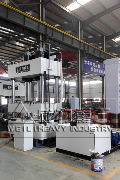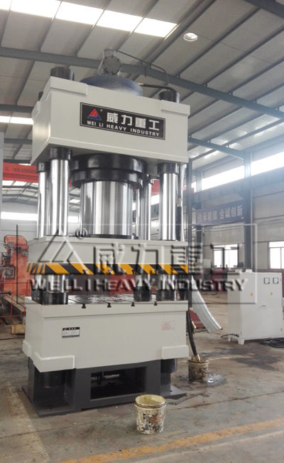 液壓機(jī)由主機(jī)及控制機(jī)構(gòu)兩大部分組成。液壓機(jī)主機(jī)部分包括機(jī)身、主缸、頂出缸及充液裝置等。動力機(jī)構(gòu)由油箱、高壓泵、低壓控制系統(tǒng)、電動機(jī)及各種壓力閥和方向閥等組成。動力機(jī)構(gòu)在電氣裝置的控制下,通過泵和油缸及各種液壓閥實(shí)現(xiàn)能量的轉(zhuǎn)換,調(diào)節(jié)和輸送,完成各種工藝動作的循環(huán)。液壓缸:將液壓能轉(zhuǎn)化為機(jī)械能液壓傳動是利用液體壓力來傳遞動力和進(jìn)行控制的一種傳動方式。液壓裝置是由液壓泵,液壓缸,液壓控制閥和液壓輔助元件。山東威力重工機(jī)床有限公司根據(jù)客戶需求定制非標(biāo)液壓機(jī)。如下圖參考