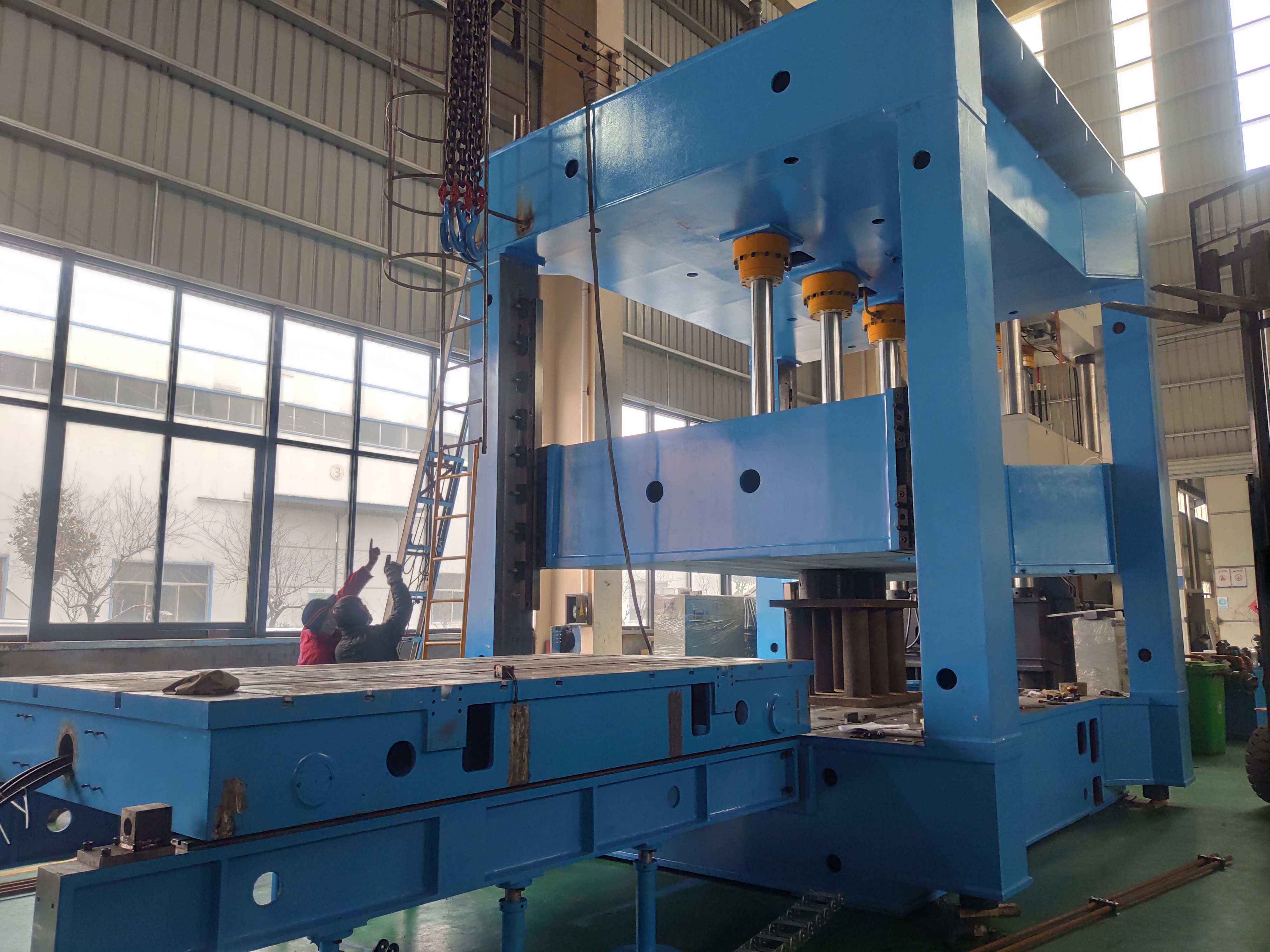 【產品描述】:一款專門為日本客戶定制的液壓機,200噸框架式液壓機(油壓機、壓力機)的移動式工作臺, 可用于金屬板材的拉伸成型、復合材料壓制成型、塑壓成型液壓機等。 這款液壓機帶有可移動式工作臺,包括下連接板,下連接板兩側固定連接有滑槽,左側滑槽上焊接固定有把手,滑槽上活動安置有上連接板,上連接板下側等距均勻滑動穿插有長桿,長桿另一端固定在下連接板上端,長
