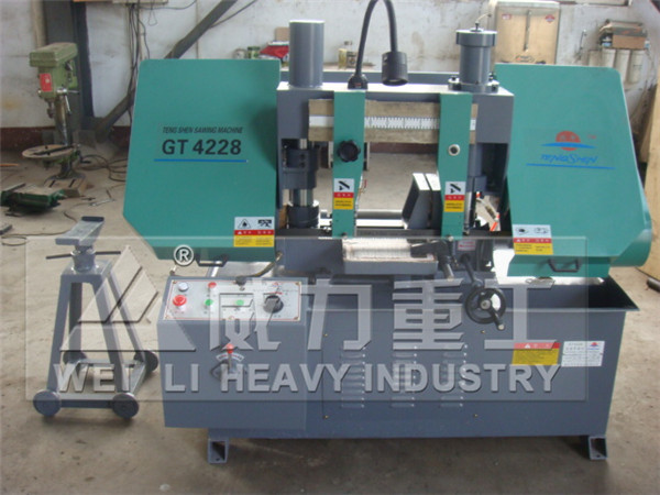 【產(chǎn)品描述】:GT4228金屬帶鋸床 : 金屬帶鋸床(英文名稱Metal band sawing machine,Metal band saw machine)主要用于鋸割碳素結(jié)構鋼、低合金鋼、高合金剛、特殊合金鋼和不銹鋼、耐酸鋼等各種金屬材料。 GT4228金屬帶鋸床是一種以金屬鋸條作為切削工具,并用于切割金屬材料的鋸切設備,主要用于黑色金屬的方料。圓料及各種型材的切割,亦可用于切割有色金屬及非金屬材料。由于帶鋸切口窄,切削效率高